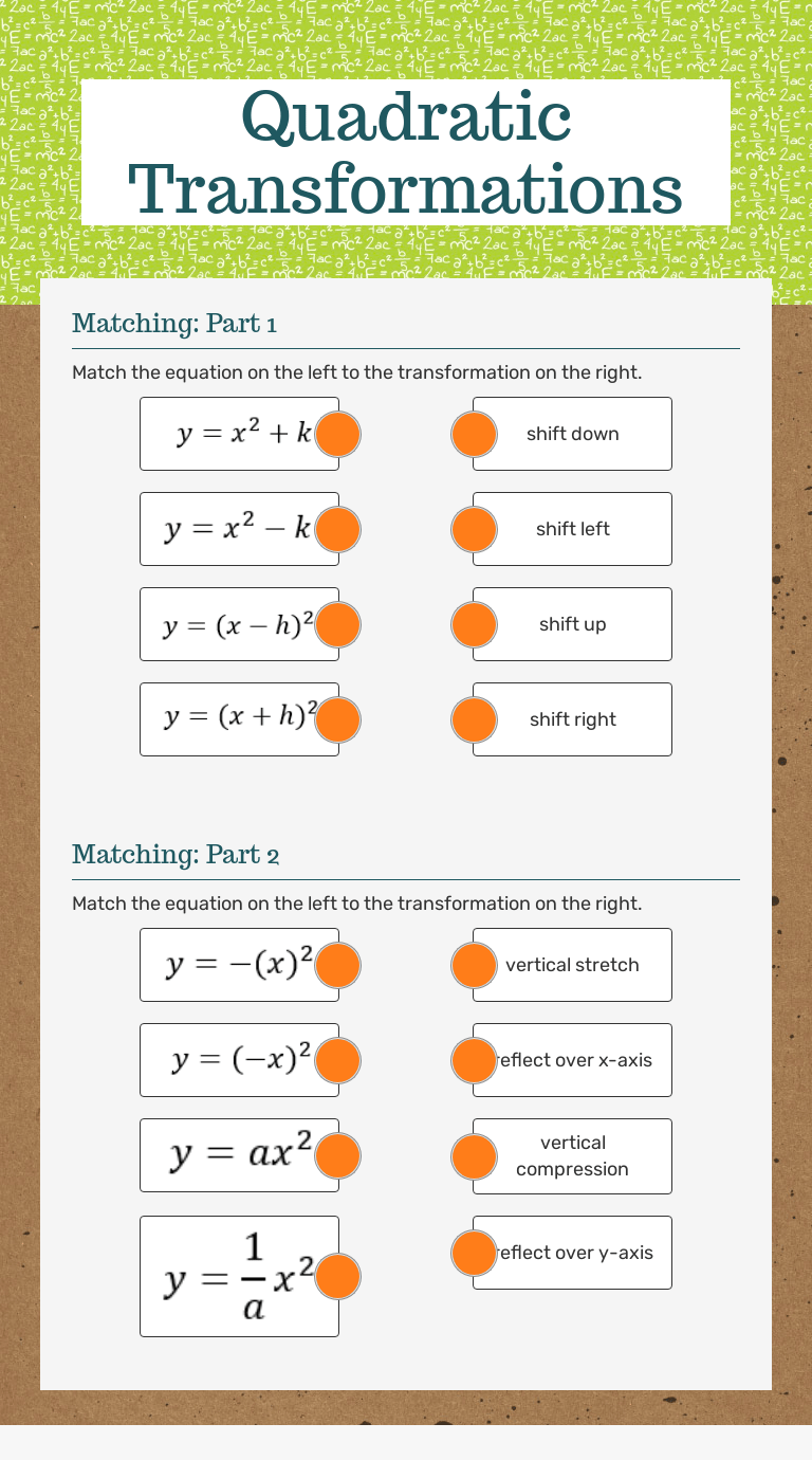 Quadratic Transformation Worksheet : Quadratic Transformations Worksheet Teachers Pay Teachers /. Special line segments in triangles worksheet. Here is a graphic preview for all of the transformations worksheets.you can select different variables to customize these transformations worksheets for your needs. (b)vertex (2;0) passing through (1;3): (d)vertex (0;1) passing through ( 1;0): Graphing quadratic functions worksheet answer key algebra 2.